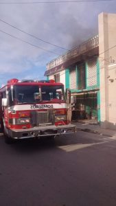 Al llegar al mencionado lugar los “apagafuegos” se encontraron con bravas llamas que alcanzaban a superar lo alto del techo del segundo piso.