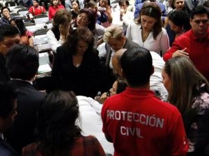 Minutos después, el Presidente de la Cámara, Porfirio Muñoz Ledo, reanudó la sesión y expresó el acompañamiento a la diputada Medel en su “terrible dolor”.