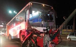 Espantoso choque de autobús con automóvil particular en la Av. Hidalgo; tres muertos hasta el momento