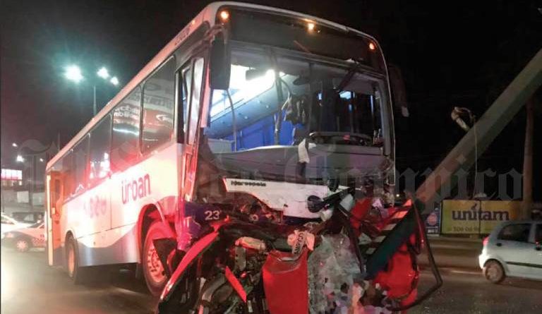 Los hechos fueron a las 22:50 horas a la altura de Plaza Palmas, donde circulaba de sur a norte un automóvil March el cual se presume invadió carril y fue proyectado por un autobús Urban