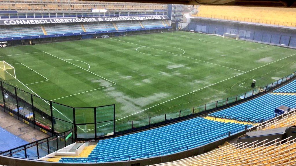 El partido de ida de la Final de la Copa Libertadores 2018 entre Boca Juniors y River Plateestá en riesgo de no disputarse por lluvia. En la ciudad de Buenos Aires ha caído una gran cantidad de agua, lo que ha hecho que la cancha de la Bombonera, el estadio de Boca, esté anegada de agua y complique la circulación de la pelota.