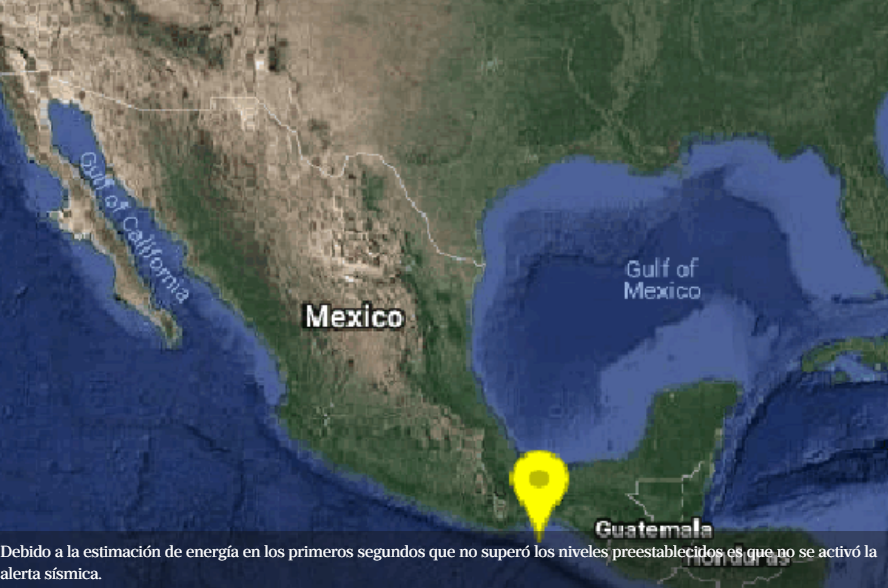 Debido a la estimación de energía en los primeros segundos que no superó los niveles preestablecidos es que no se activó la alerta sísmica.
