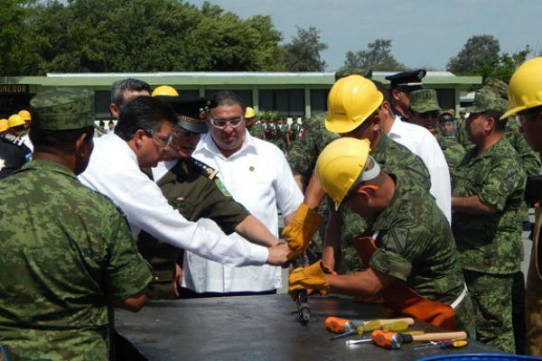 Junto al comandante Pancardo Escudero encabezaron la destrucción de las armas, el Comandante de la Cuarta Región Militar, General de División Jens Pedro Lohmann Iturburu y el gobernador del estado, Francisco Cabeza García de Vaca.