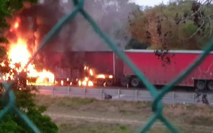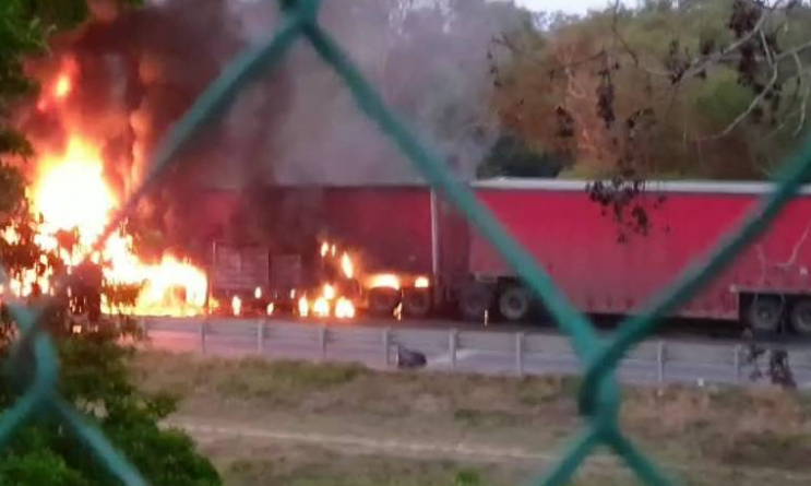 El tracto camión rápidamente fue consumido por el fuego su operador José Mario “N” de 51 años de edad, resultó ileso y alcanzó a ponerse a salvo, dando aviso al servicio de emergencia 911 y acudieron de inmediato bomberos de Tampico y Altamira a controlar el incendio que también logró consumir parte del primer remolque.