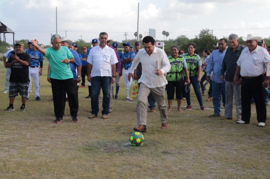 Más tarde acompañó a los deportistas y puso en marcha los juegos haciendo un tiro a la portería de fútbol, así como también bateó la pelota para iniciar el partido de sófbol femenil, en donde también dio el banderazo para iniciar los trabajos de rehabilitación del campo en donde se colocará tierra roja en el área diamante.