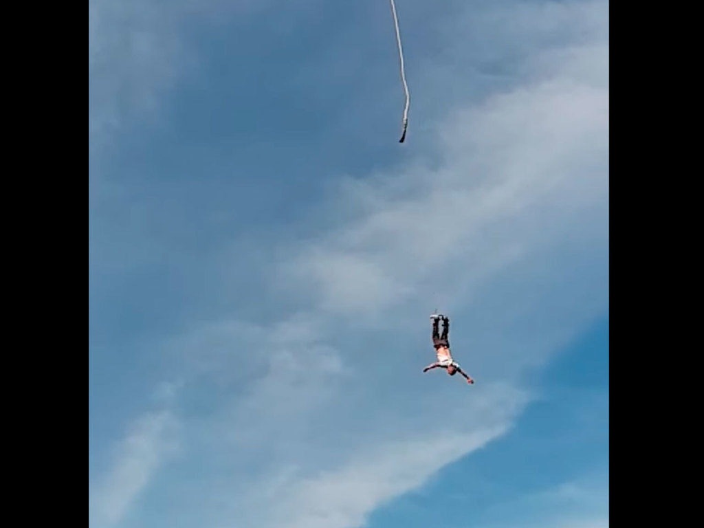 Se le cortó el cable del bungee jump a 90 metros y se salvó