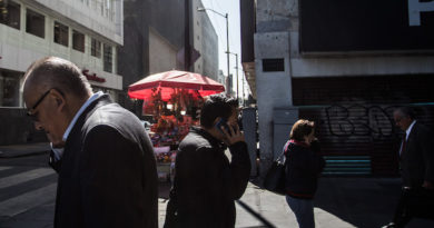 Luego, varios empleados se acercan para ver si está bien.