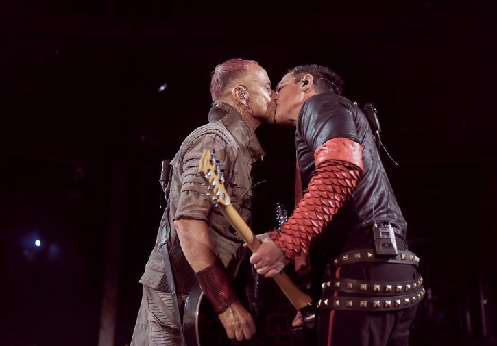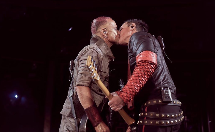 MOSCÚ, Rusia.-Paul Landers y Richard Kruspe, integrantes de Rammstein, se besaron en la boca durante su presentación en el Estadio Luzhniki de Moscú.