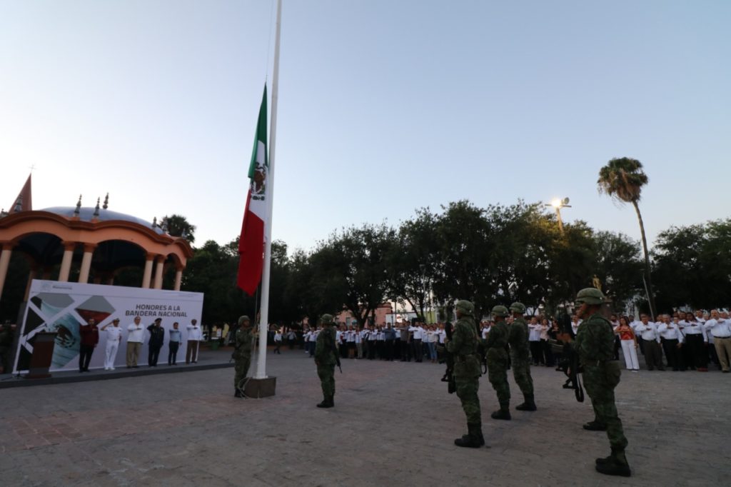Como parte del fortalecimiento de los valores cívicos entre los empleados de las diferentes áreas del gobierno municipal, este lunes, se realizaron honores a la bandera en la plaza principal, acto al que asistió con la representación del alcalde Mario Alberto López Hernández, el secretario del Ayuntamiento, Federico Fernández Morales.