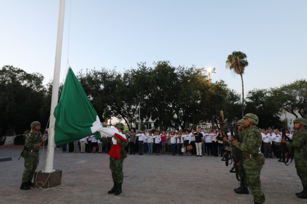 Participan servidores públicos de gobierno municipal de Matamoros, en ceremonia cívica