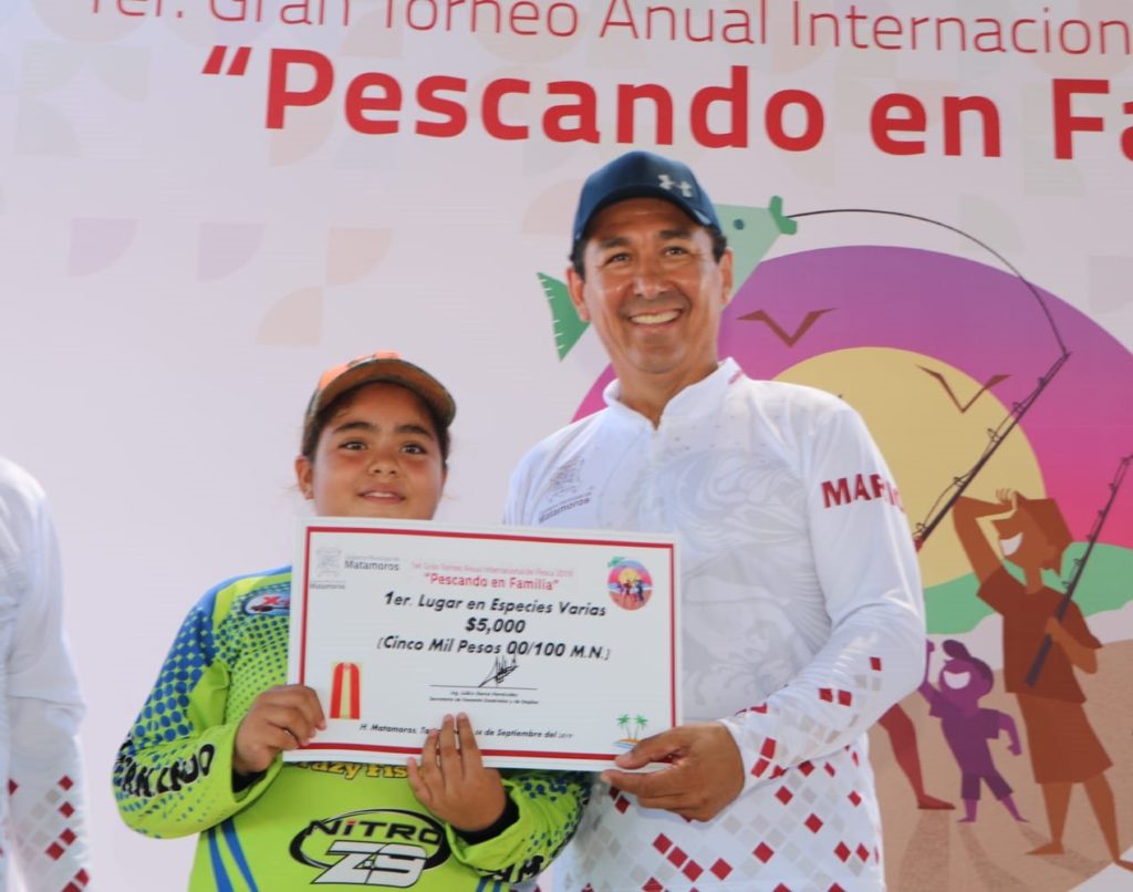 Al momento de la premiación de los mejores pesos de corvina, trucha, tambor, especies varias en las categorías infantil y adultos, el alcalde Mario Alberto López Hernández mencionó a las cientos de familias presentes, el interés del gobierno municipal de seguir impulsando acciones para mantener limpia la Playa Bagdad y alcanzar su certificación en el área que está bajo el resguardo del municipio.