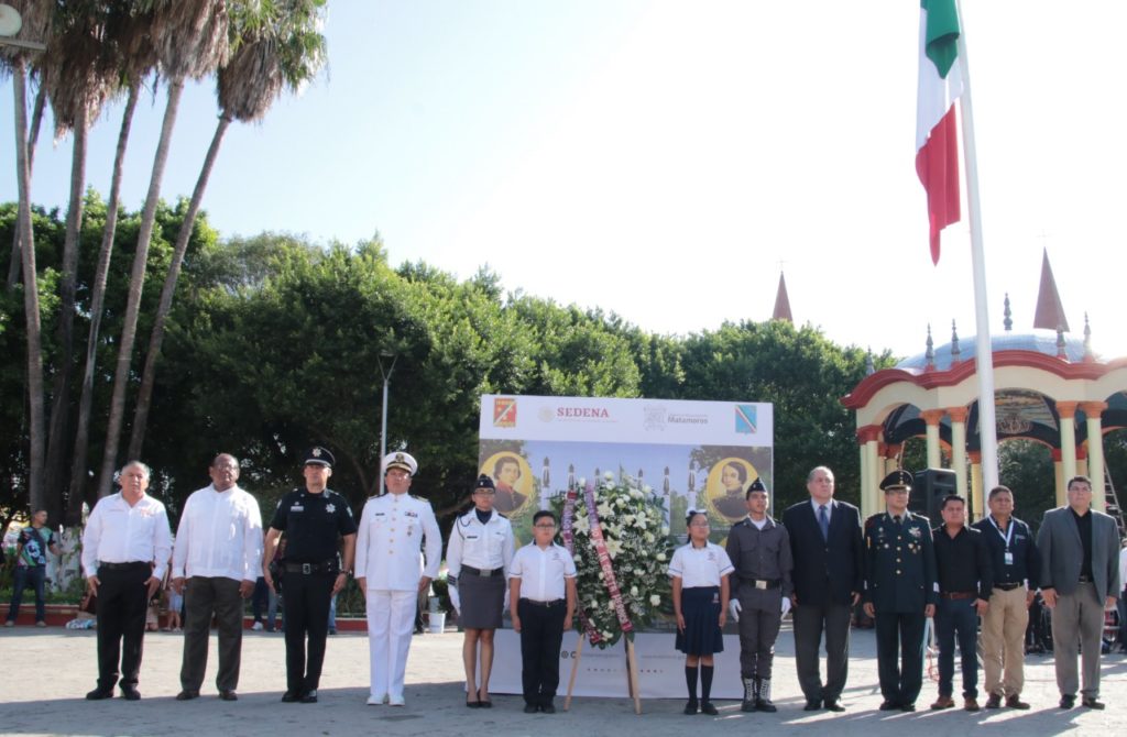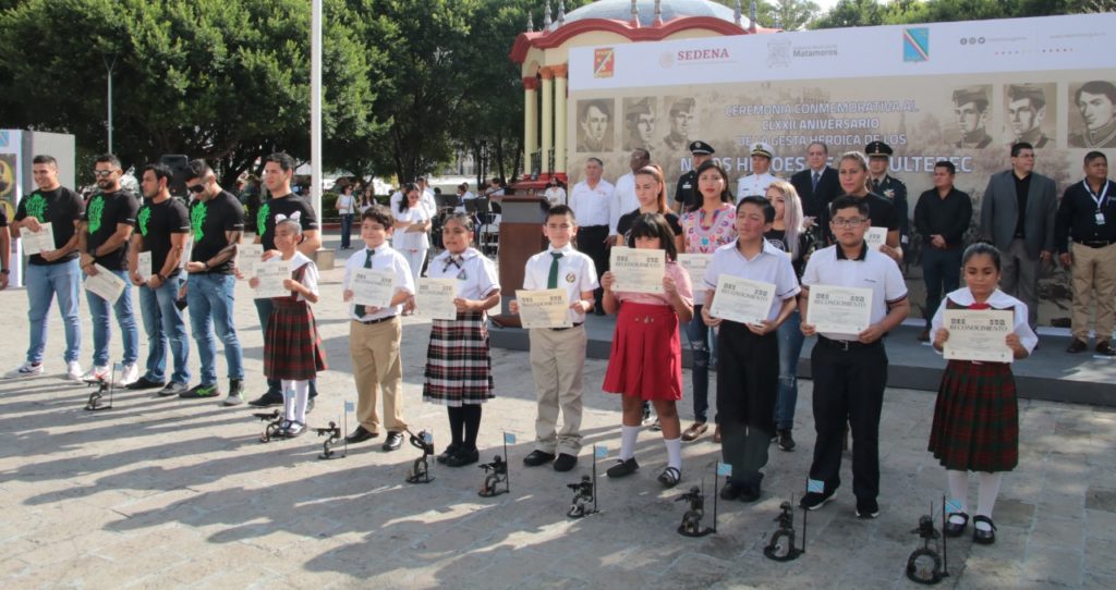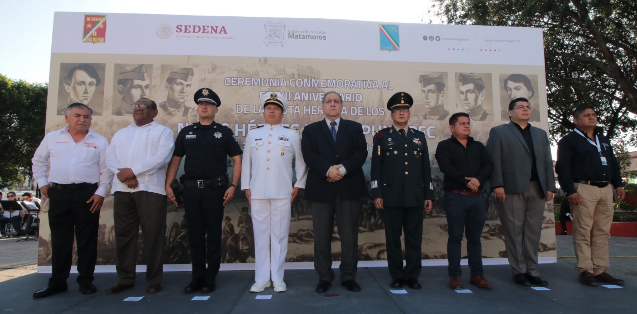 El General Brigadier Diplomado Estado Mayor Francisco Miguel Aranda Gutiérrez, Comandante de la Guarnición Militar de Matamoros dirigió un mensaje en el que destacó “llamamos héroes a quienes sacrifican todo y con valor a la patria.