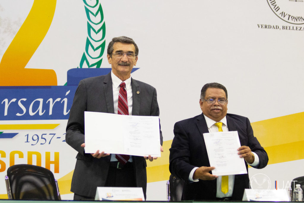 Acompañaron también en el presidium, los funcionarios de la UAT, el Secretario General, Eduardo Arvizu Sánchez, el Secretario de Finanzas, Guillermo Mendoza Cavazos y el Titular del Órgano Interno de Control, Sergio Leopoldo Bello Cano; así como el Decano de la UATSCDH, Francisco Guadalupe Robles Maldonado.