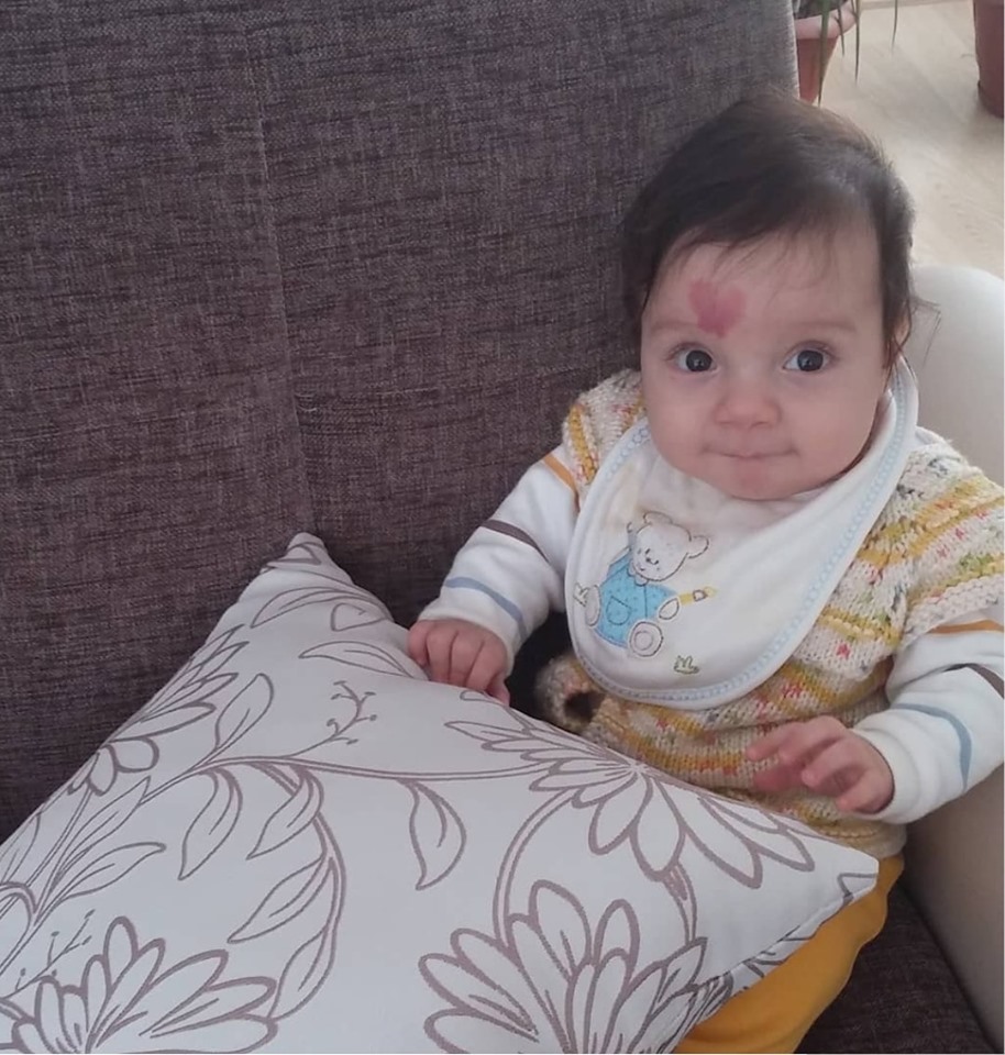 Un bebé turco nació con una curiosa marca con forma de corazón en la frente.