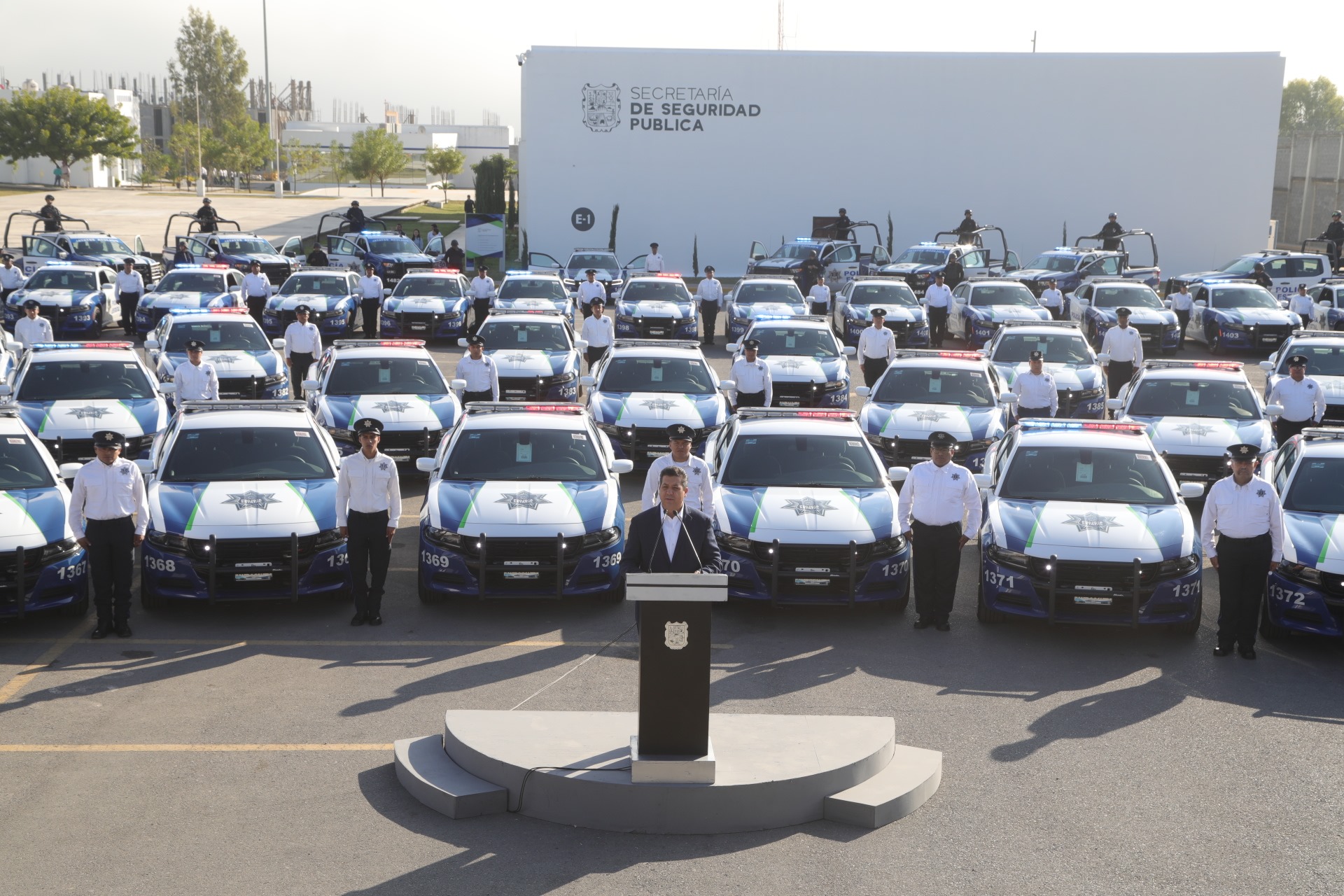 La Secretaría de Seguridad Pública recibió hoy 43 patrullas tipo Charger y 20 patrullas Pick-up, de un total de 190 unidades adquiridas por el Gobierno Estatal con una inversión superior a 178 millones de pesos, para fortalecer las tareas de Seguridad Pública; la entrega fue realizada personalmente por el mandatario.