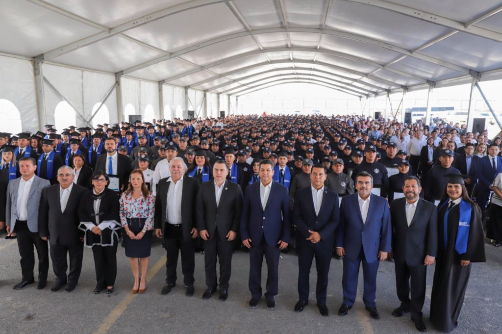 “En tan solo 3 años hemos dado un viraje al tema de percepción. Hoy día a nuestros policías se les respeta, saben que son mujeres y hombres que vienen a aplicar la ley y vienen a garantizar la seguridad de nuestras familias. Cuenten siempre con el respaldo del Gobernador de Tamaulipas”, destacó, al tiempo de extender una felicitación a los graduados.
