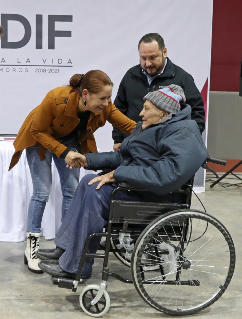 La Presidenta del Sistema DIF Matamoros Marsella Huerta de López, entregó este miércoles 80 sillas de ruedas a personas con discapacidad.