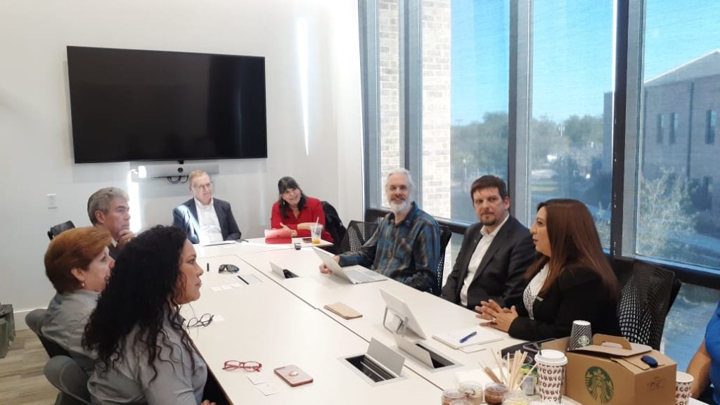 El viernes 13 de diciembre al concluir la reunión del Consejo de Vinculación del campus Matamoros del TecNM el Dr. Guillermo Hernández Duque, Secretario de Extensión y Vinculación del Tecnológico Nacional de México; la Mtra. Mara Acosta González Directora del I.T. de Matamoros; la Mtra. Santa Iliana Castillo García, Subdirectora Académica; y la Dra. Anabel Pineda Briseño Profesora Líder de ARCC en México se trasladaron a la UTRGV – The University of Texas Rio Grande Valley en Brownsville Texas USA para sostener una reunión con Dennis Hart, Vicepresidente Asociado de la Oficina Global; Linda I. Ufland, Gerente de Centro de Emprendimiento y Desarrollo Económico; Dr. Teviet Creighton, Director del Centro de Radioastronomía Avanzada (CARA); Alma Guerrero-Miller, Subdirectora del Centro de Radioastronomía Avanzada (CARA); Dr. Volker Quetschke, Decano Asociado de Investigación y Programas de Posgrado del Colegio de Ciencias de la UTRGV; acompañados de su equipo de trabajo con la finalidad de estrechar lazos para la vinculación binacional entre ambas instituciones educativas.