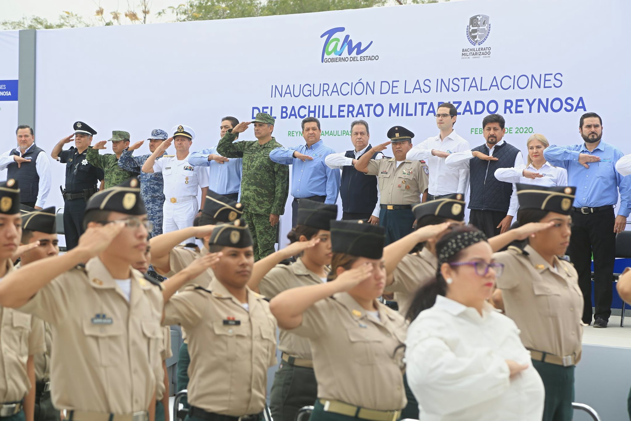 Acompañaron al Gobernador, el General de Brigada D.E.M Carlos Arturo Pancardo Escudero, Comandante de la 8ª. Zona Militar, el Contraalmirante I.M.P. D.E.M. Jaime Verástegui Camacho, Comandante del Sector Naval Matamoros, Capitán 1º de Infantería D.E.M. Gonzalo Pacheco Santiago, director del Bachillerato Militarizado, el Secretario de Educación, Mario Gómez Monroy, Eduardo Gómez Leal Subsecretario de Planeación de la Secretaría de Obras Públicas, el director general del ITIFE; Juan Patiño, integrantes de la Mesa de Seguridad para la Construcción de la Paz, legisladores locales, sociedad civil, entre otros.