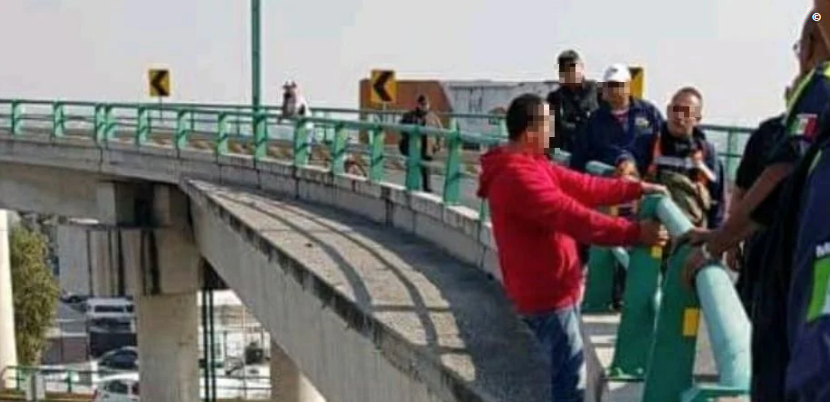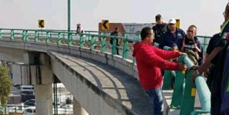 El hombre de entre 30 y 35 años circulaba sobre dicha vialidad en una camioneta blanca cuando detuvo su marcha, bajó del vehículo y brincó la barrera de protección con la intención de lanzarse del puente, por lo que policías y bomberos de Coacalco implementaron un operativo.