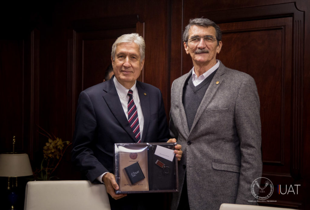 El Rector José Andrés Suárez Fernández dio la bienvenida al Mtro. David Noel Ramírez Padilla, Rector Emérito del Instituto Tecnológico de Monterrey (ITESM), quien impartió una conferencia en la Universidad Autónoma de Tamaulipas (UAT).