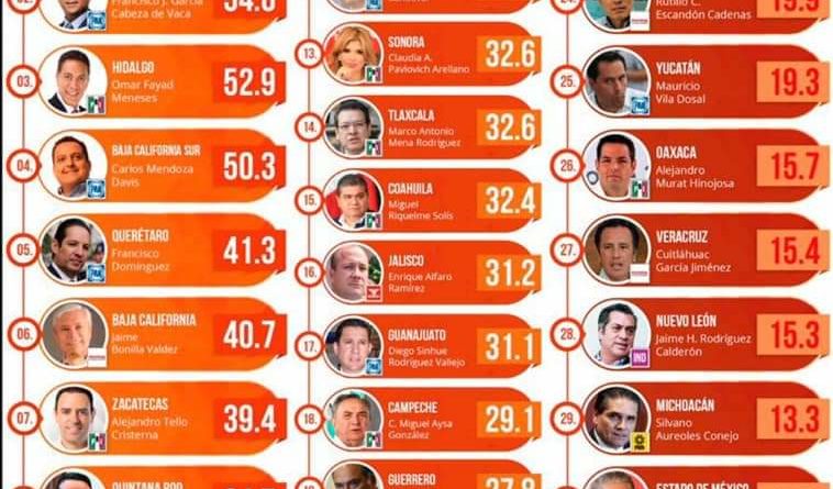 Durante los más recientes 15 meses, el mandatario tamaulipeco se ha colocado en los primeros cinco lugares del ejercicio de evaluación