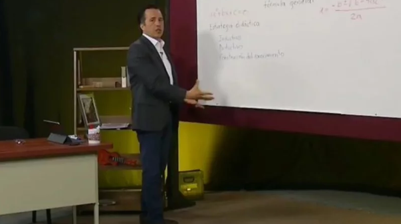 El gobernador de Veracruz, Cuitláhuac García Jiménez, impartió este martes una clase de matemáticas, en medio de la contingencia sanitaria que hay en país por el coronavirus (Covid-19).