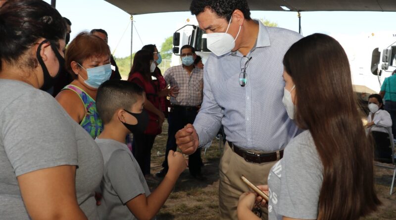 Durante su visita al Fraccionamiento CIMA 1 en donde el Presidente Municipal hizo entrega de cuatro camiones compactadores para el fortalecimiento del servicio de recolección de basura, recibió el agradecimiento por parte de la población escolar de la primaria “Himno a Tamaulipas”, representada por su director Juan Carlos Arcineaga Torres.
