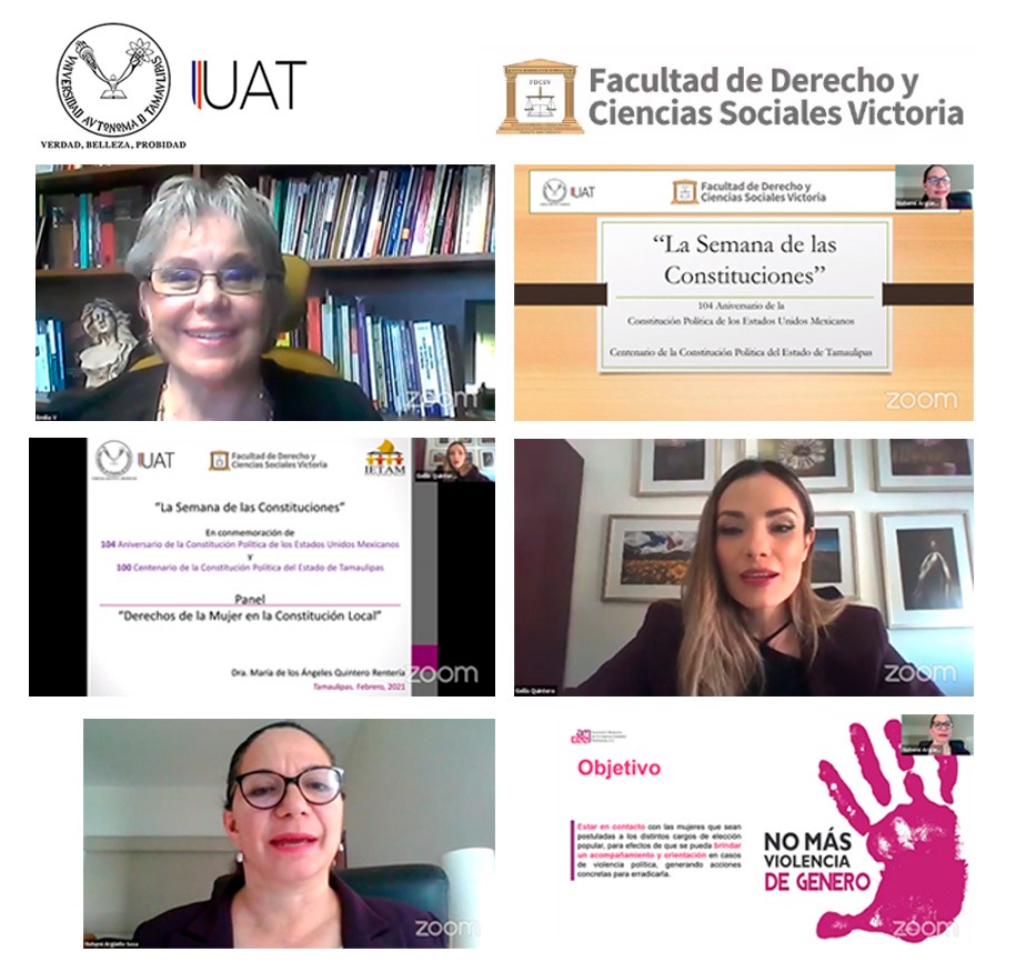 Como parte del ciclo de conferencias virtuales “La Semana de las Constituciones” que organizó la Universidad Autónoma de Tamaulipas (UAT) a través de la Facultad de Derecho y Ciencias Sociales Victoria (FDCSV), se realizó el panel “Derechos de la Mujer en la Constitución Local”.