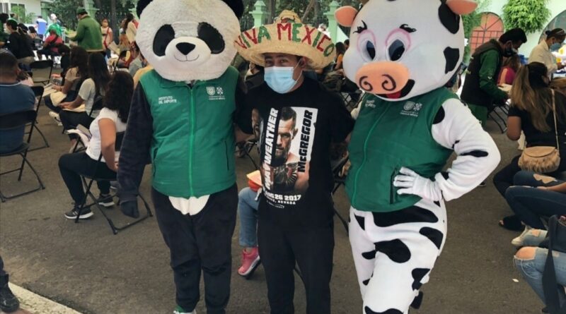 “Aparece un panda en la sala de seguimiento del sitio de vacunación en México. Se dice que es la mascota Pandemio la que fomenta la vacunación. El disfraz de panda animó a los que terminaron la vacunación a hacer ejercicio”, explica el medio japonés.
