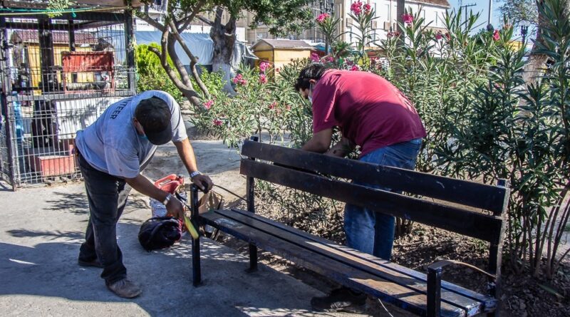 Adicionalmente se realizan trabajos de pintura en los kioscos de cada una de las plazas, se pintan las bancas y están plantando árboles nuevos, principalmente encinos, por ser más resistentes a las condiciones del clima que se registran en esta frontera.