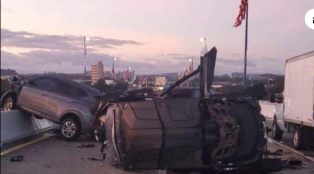 El accidente ocurrió a las 02.35-hora local- y quedó grabado por las cámaras de seguridad del puente.