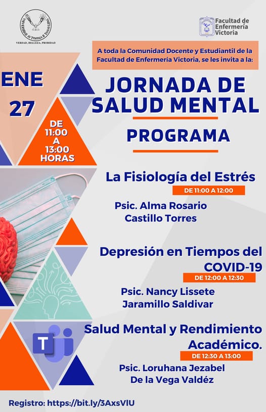Con el propósito de abordar temas relacionados a las emociones en el contexto de COVID-19, la Facultad de Enfermería Victoria (FEV) de la Universidad Autónoma de Tamaulipas (UAT) realizó la Jornada de Salud Mental, dirigida a la comunidad estudiantil.