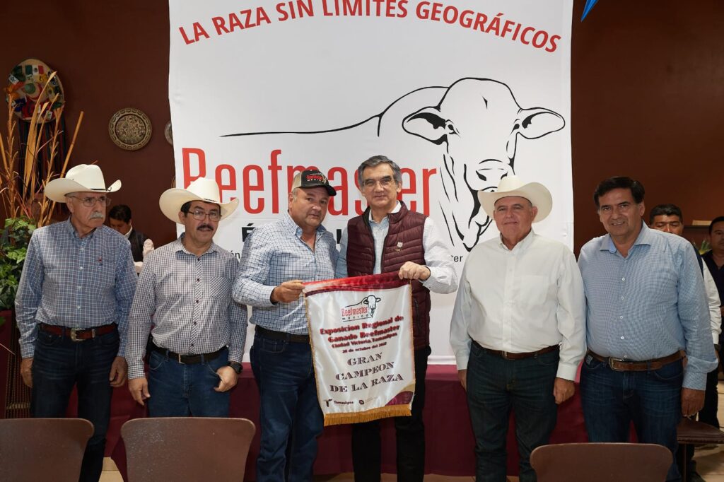 Acompañaron al gobernador, el Secretario de Desarrollo Rural, Dámaso Anaya Alvarado; el representante de la Unión Ganadera Regional de Tamaulipas, José Ramón Guerrero; el delegado estatal de la Asociación de Criadores de Ganado Beefmaster, José María Núñez Vargas, así como destacados criadores de ganado Beefmaster como César González Quiroga, Napoleón de la Garza D’amico y Carlos de la Garza D’amico.