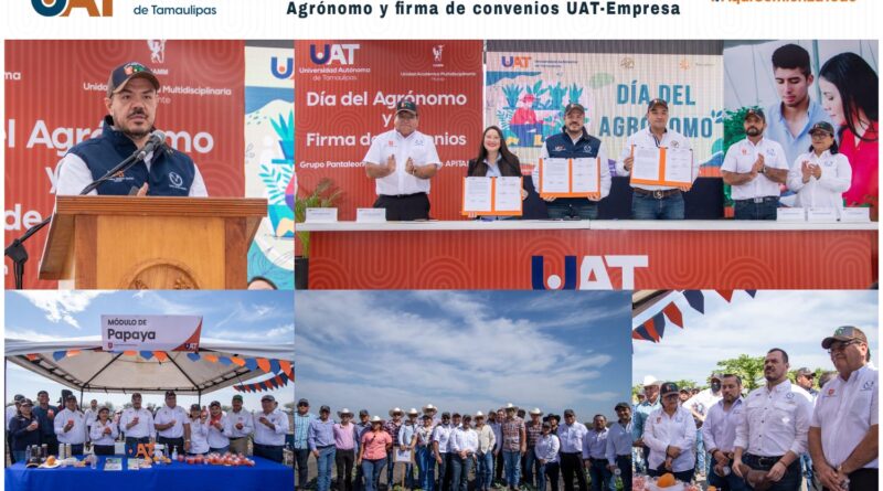 El C.P. Guillermo Mendoza Cavazos, rector de la Universidad Autónoma de Tamaulipas (UAT), presidió en el campo experimental La Posta, de la Unidad Académica Multidisciplinaria Mante (UAM Mante), la ceremonia conmemorativa universitaria por el Día del Agrónomo y la firma de convenios Universidad-Empresa con organismos del sector productivo del sur de Tamaulipas.