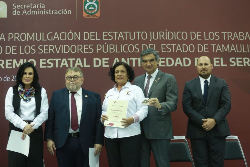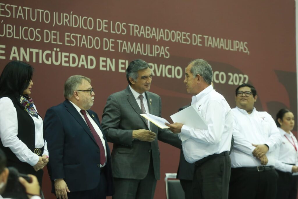 En la entrega del Premio Estatal de Antigüedad en el Servicio Público 2022, que se realizó en el Polyforum Victoria, Villarreal Anaya explicó que se ha realizado una homologación de los niveles más bajos de categoría confianza, extraordinario y contrato, para obtener un único nivel operativo, el 149; en el cual se verán reflejados incrementos desde el 10% hasta el 82%.
