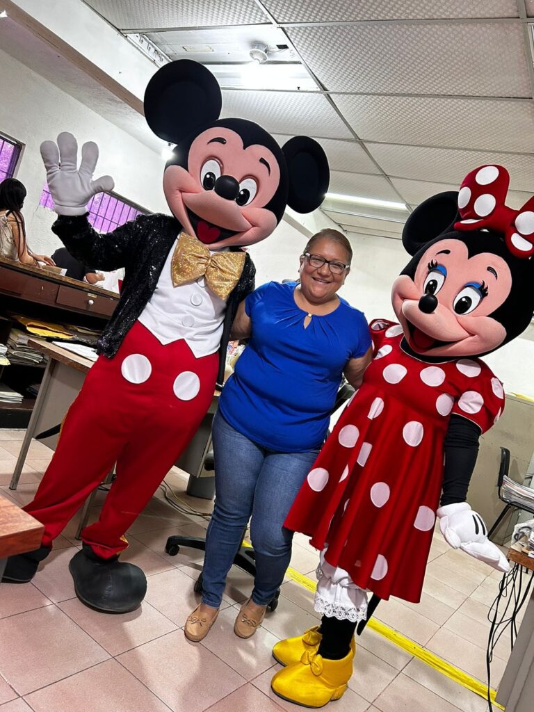 Aprovechando la presencia de Mickey y Minnie Mouse a la oficina, también el personal del registro 4, que está ubicado en la calle Ocampo y Roberto F. García, no quisieron pasar la oportunidad de tomarse también la foto del recuerdo ya que sienten que hasta los adultos traen un niño adentro.