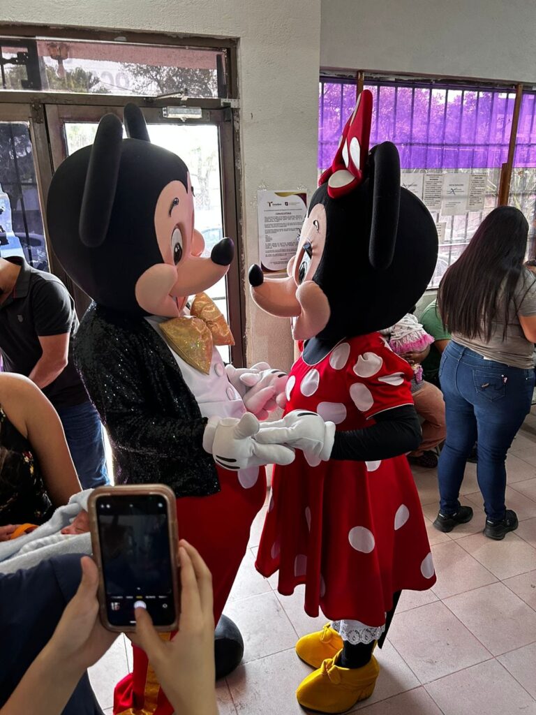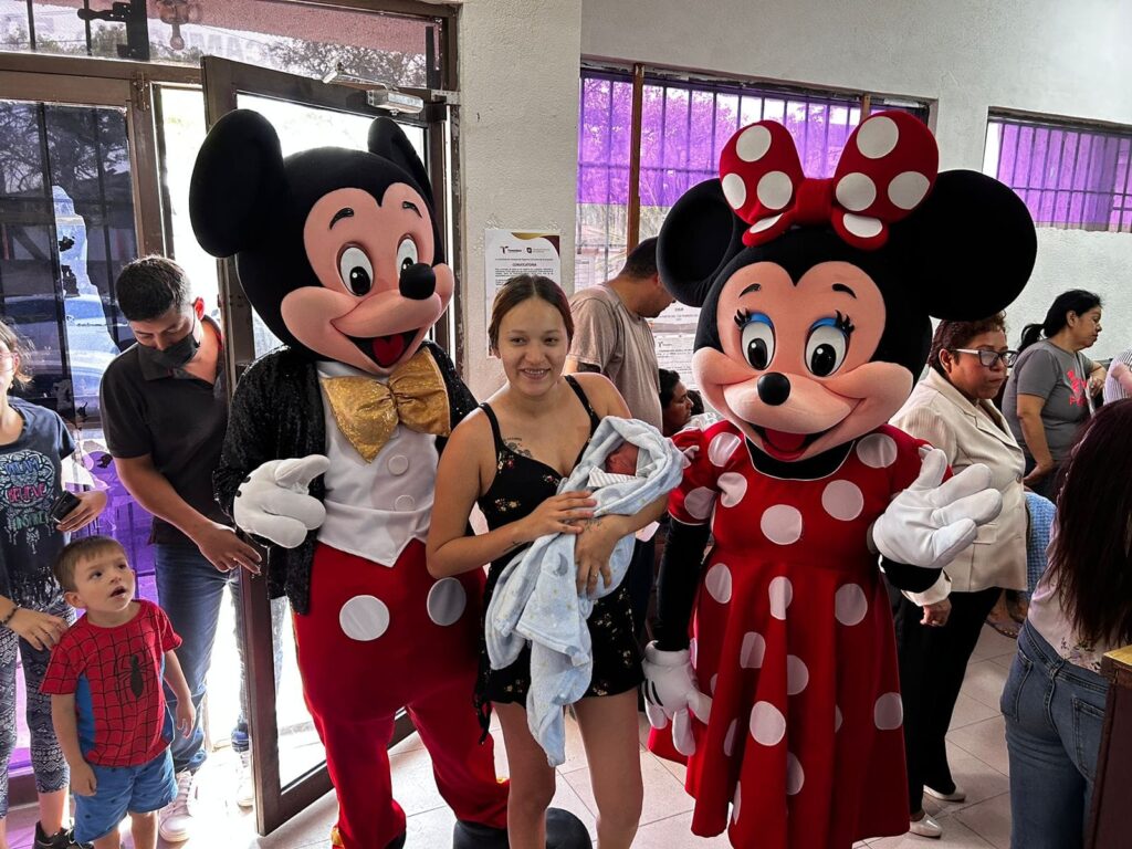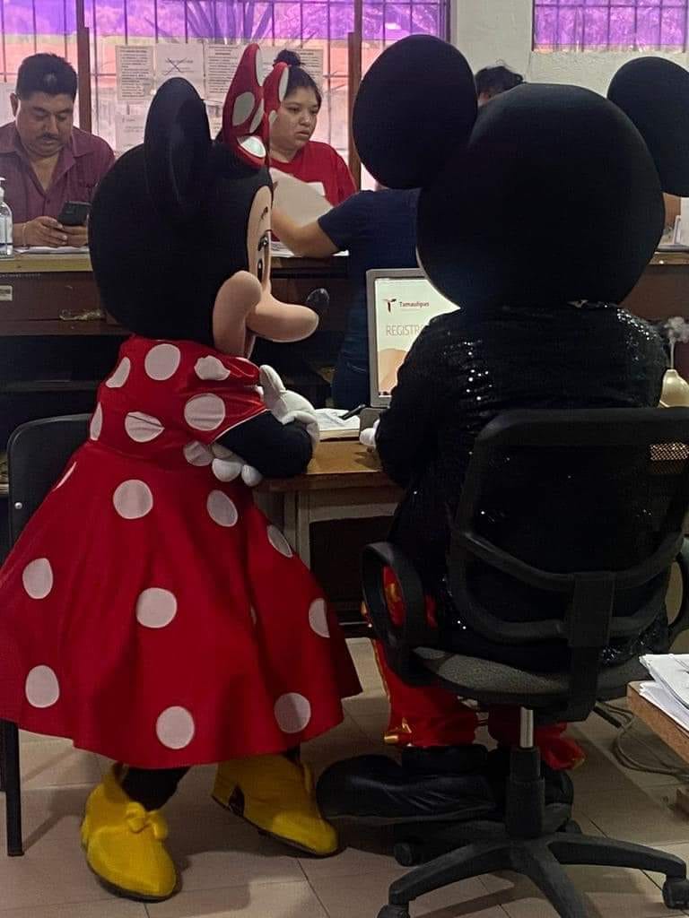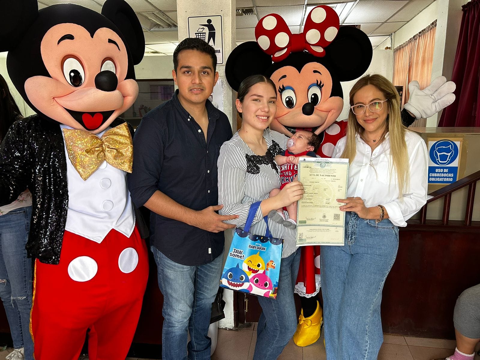 Tremenda sorpresa se llevaron los papis que el día de hoy 28 de abril se presentaron a registrar a sus bebés a la Oficialía 4 del Registro Civil en Matamoros ya que fueron recibidos por Mickey y Minnie Mouse, personajes muy queridos por los reyes del hogar.