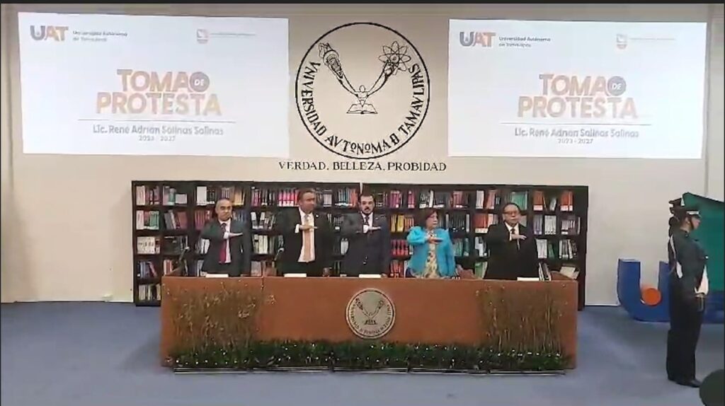 El rector de la Universidad Autónoma de Tamaulipas (UAT), C. P. Guillermo Mendoza Cavazos, le tomó protesta al Mtro. René Adrián Salinas Salinas como director de la Facultad de Comercio, Administración y Ciencias Sociales de Nuevo Laredo (FCACS) para el período 2023-2027.