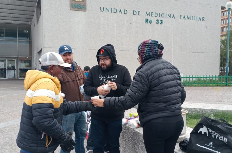 Reynosa, Tamaulipas.- Con el objetivo de amortiguar los efectos de las bajas temperaturas, integrantes da la asociación civil Regalando Sonrisas se dieron cita a las afueras de la Clínica 33 y el Hospital 15 del Instituto Mexicano del Seguro Social para ofrecer pan, café y champurrado caliente a las derechohabientes que acudieron a una consulta médica o acampaban en urgencias en espera de noticias de algún familiar.
