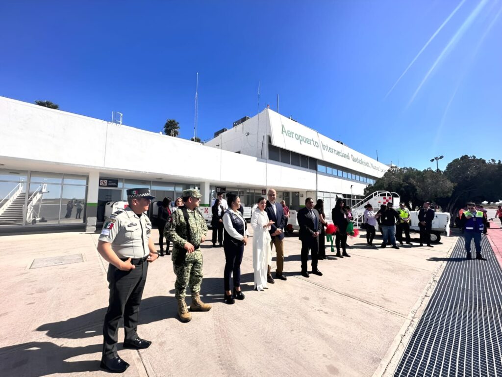 Nuevo Laredo, Tamaulipas.- Para fortalecer la conectividad aérea e impulsar el desarrollo regional de Tamaulipas, la aerolínea Mexicana de Aviación inició operaciones en el Aeropuerto Internacional Quetzalcóatl de Nuevo Laredo con destino al Aeropuerto Felipe Angeles con escala en el Aeropuerto Pedro J. Méndez de Ciudad Victoria en una ceremonia que contó con la presencia de autoridades federales, estatales y municipales.