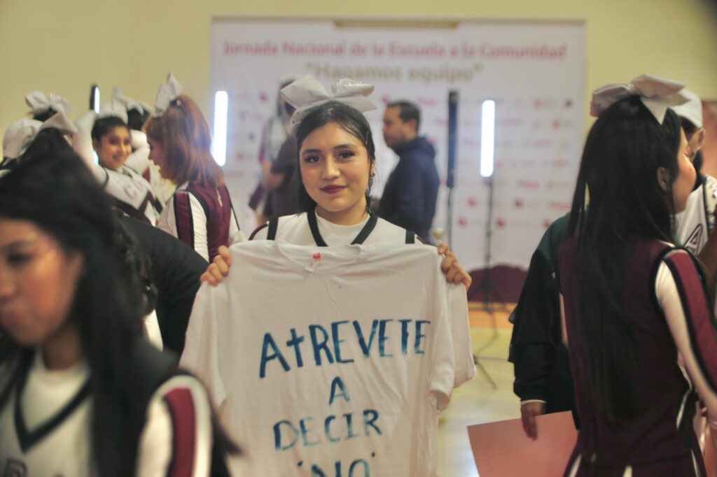 Ciudad Victoria, Tamaulipas.- Atendiendo la convocatoria especial emitida por la Secretaría de Educación de Tamaulipas, a través de la Subsecretaría de Educación Básica, el Injuve, representado por su directora general, Judith Katalyna Méndez Cepeda, participó dentro de las actividades que enmarcaron la Jornada Nacional de la Escuela a la Comunidad, con la campaña “Si te Drogas, te Dañas”, como parte de las estrategias para la prevención de adicciones.