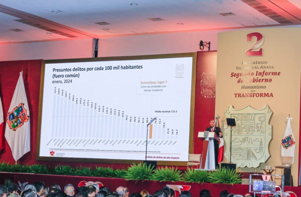 En su mensaje con motivo del Segundo Informe de Gobierno, en el Polyforum de Ciudad Victoria y acompañado por el secretario de Energía, Miguel Ángel Maciel Torres, representante del presidente de México, Andrés Manuel López Obrador, y de la presidenta del Sistema DIF Tamaulipas, María de Villarreal, el gobernador aseguró que un gobierno humanista debe contribuir al bienestar y al desarrollo social, basado en los valores de la verdad, la justicia y la honestidad.