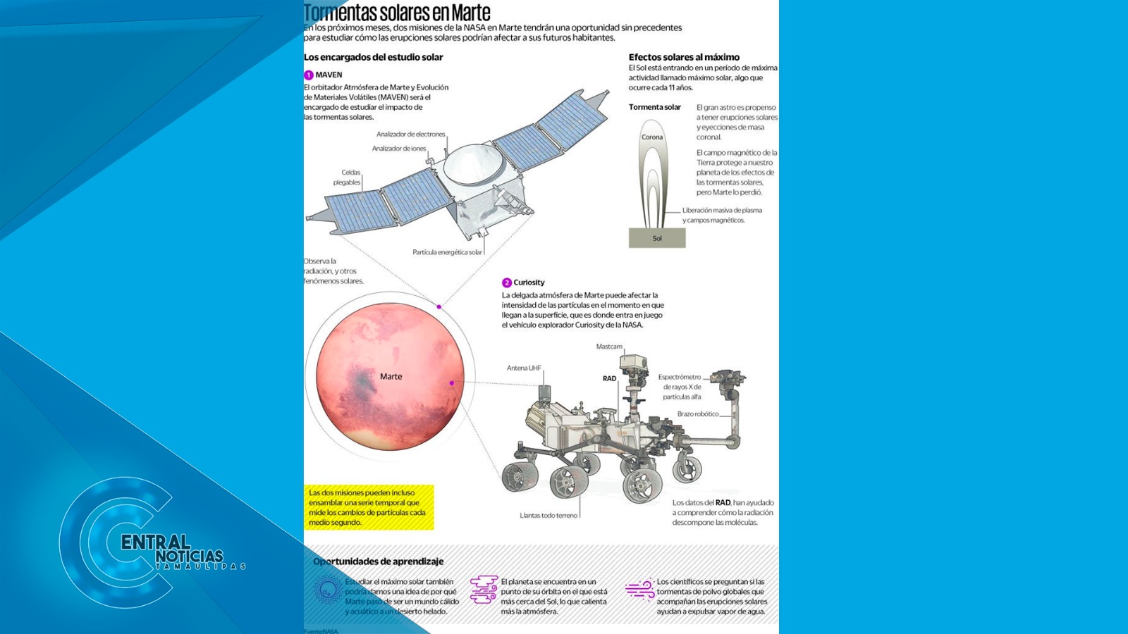 En cierta medida, el campo magnético de la Tierra nos protege contra los efectos de estas tormentas, pero Marte perdió su campo magnético hace mucho tiempo por lo que es más vulnerable a las partículas de energía del Sol. Los investigadores esperan que el máximo solar en curso también brinde oportunidad de averiguar qué tanta protección contra la radiación necesitarán los astronautas.