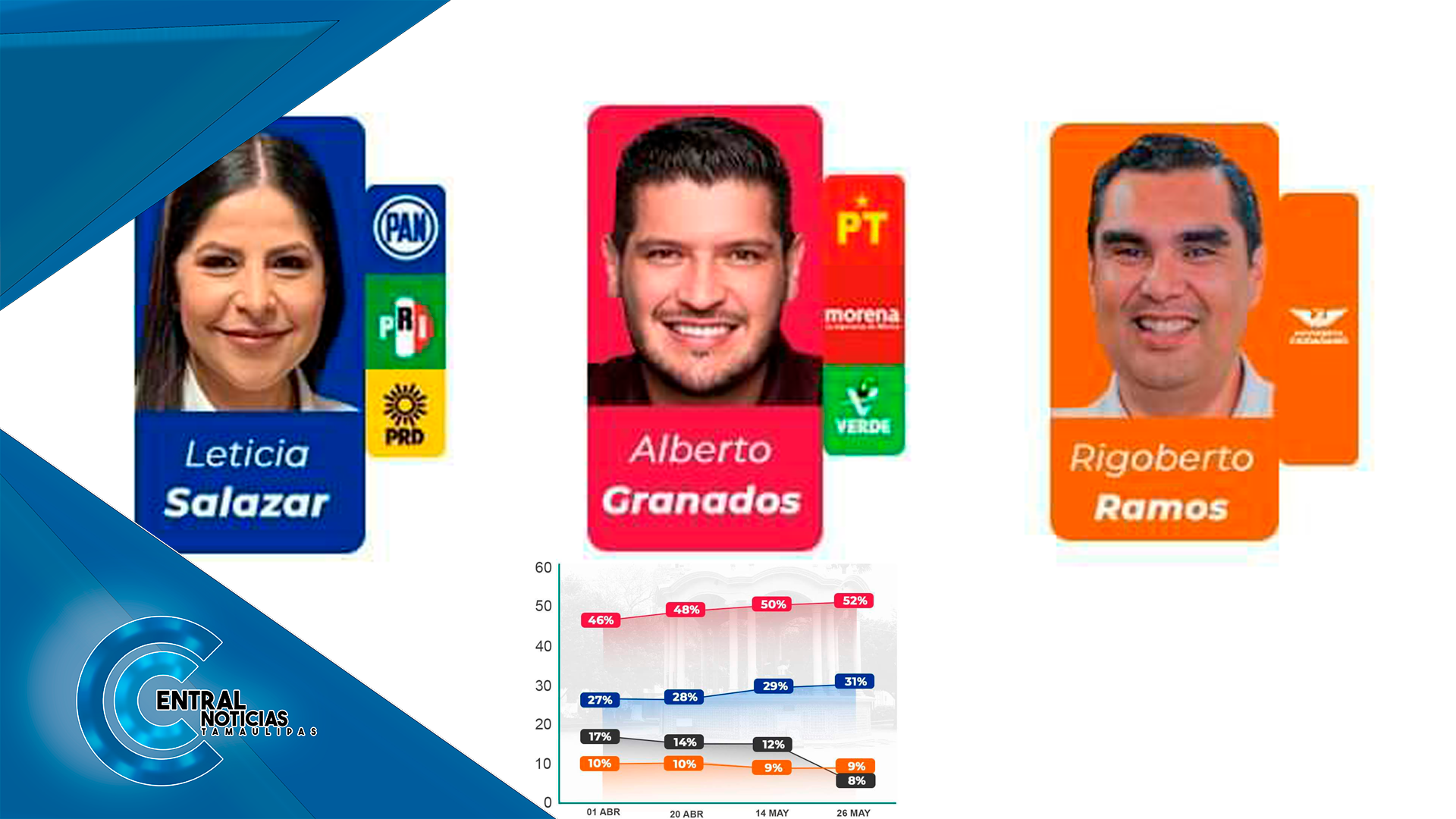 De acuerdo al más reciente estudio de opinión de la encuestadora Percepción Social, Beto Granados; candidato por Morena a Alcaldía de Matamoros; lidera las preferencias electorales en esta ciudad fronteriza.