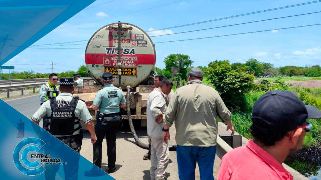 La investigación reveló que personal de Seguridad Física de Petróleos Mexicanos (PEMEX) ya se encontraba trabajando en la comunidad Cuauhtémoc, realizando labores de extracción del líquido derramado.