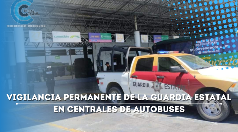 Ciudad Victoria, Tamaulipas. – En el marco del periodo vacacional de verano, personal de la Guardia Estatal realiza recorridos de seguridad y vigilancia en las centrales de autobuses de la entidad.
