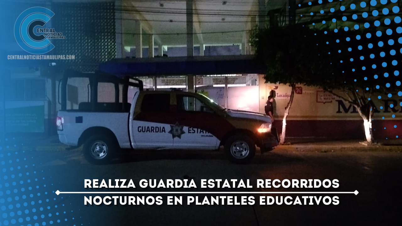 Ciudad Victoria, Tamaulipas. – A unas semanas de reanudar la actividad estudiantil en planteles de Tamaulipas, personal de la Guardia Estatal refuerza la vigilancia a través del operativo ‘’Escuela Segura’’, en el cual se realizan recorridos de seguridad y vigilancia, incluso, en horarios nocturnos con la finalidad de prevenir actos constitutivos de delito.