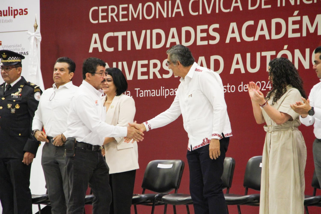 “Señor gobernador, en la UAT estamos comprometidos a seguir contribuyendo al progreso de Tamaulipas, alineándonos con sus proyectos y políticas educativas y, por supuesto, con las políticas que en materia de educación establezca el gobierno federal que próximamente encabezará la Dra. Claudia Sheinbaum Pardo”, asentó.