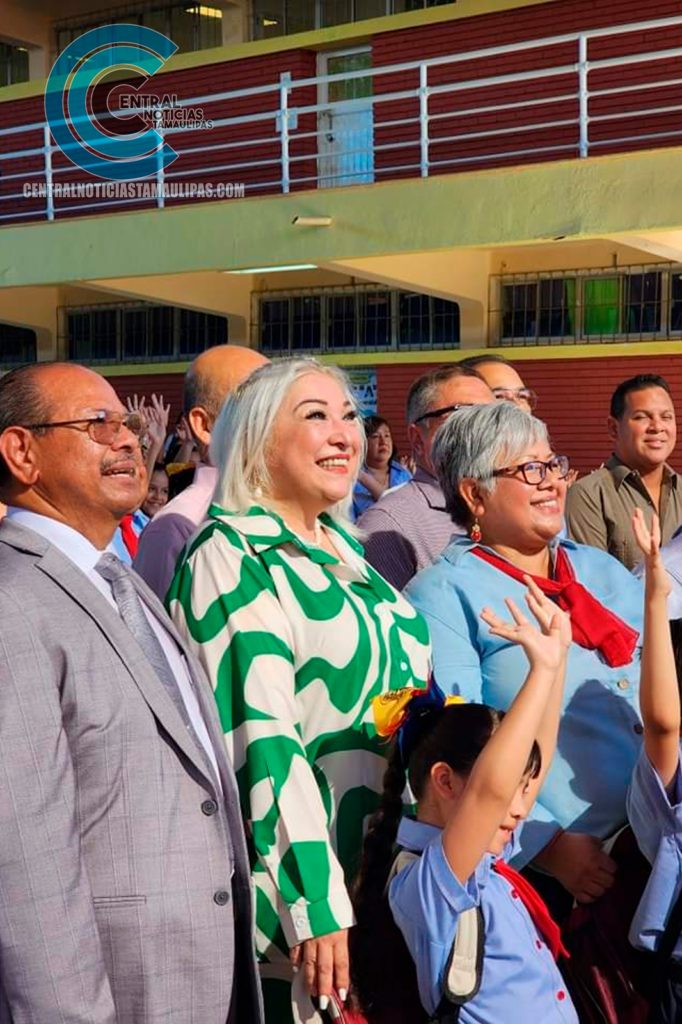 Matamoros, Tamaulipas – Este lunes, la Escuela Primaria “Adalberto J. Arguelles” fue sede de la ceremonia de inicio del ciclo escolar 2024-2025, evento que contó con la presencia de la Secretaría de Finanzas del Estado en representación del gobernador Américo Villarreal Anaya. Con un discurso cargado de entusiasmo y cercanía, la tesorera estatal compartió el mensaje del mandatario, subrayando el compromiso de su administración con una educación inclusiva y de calidad para todos los tamaulipecos.